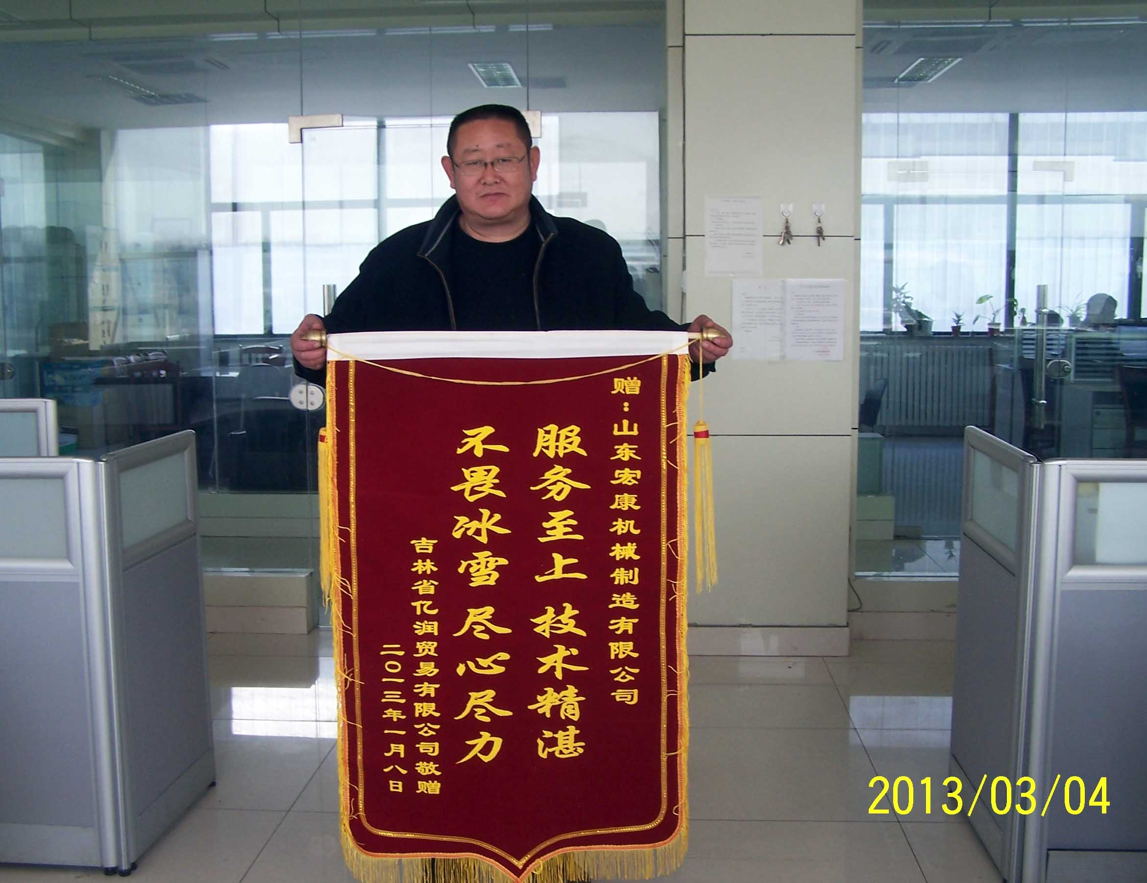 新年伊始(shǐ),集團公司迎來(lái)了一份不同尋常的殊榮:吉林(lín)省億潤貿(mào)易有限公司寄來了一麵書有“服務至(zhì)上,技術精湛,不畏冰(bīng)雪,盡心盡(jìn)力” 大字的錦旗,對(duì)銷售公司安裝服務人員提出了高度的讚揚。紅(hóng)布黃字,看(kàn)似普普通通的一麵錦旗,背後卻是集(jí)團公(gōng)司售後團隊戰嚴寒鬥(dòu)冰雪、哪裏需要就(jiù)哪裏去的堅持與付出精神的真實寫(xiě)照。