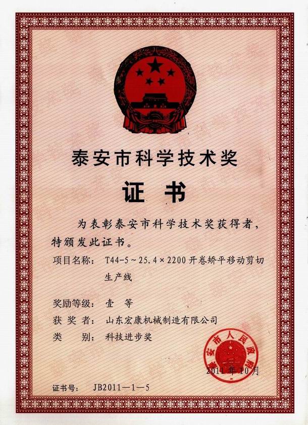 4月6日,全市科學技術(shù)獎勵大(dà)會隆重召開。我集團巨爆乳中文字幕爆乳区機械公司“T44-5-25.4x2200開卷矯平移動剪(jiǎn)切生產線”項目榮(róng)獲2011泰安市科技進步一(yī)等獎,副總經(jīng)理康峰參(cān)加會議並代表集團公司上台領獎.