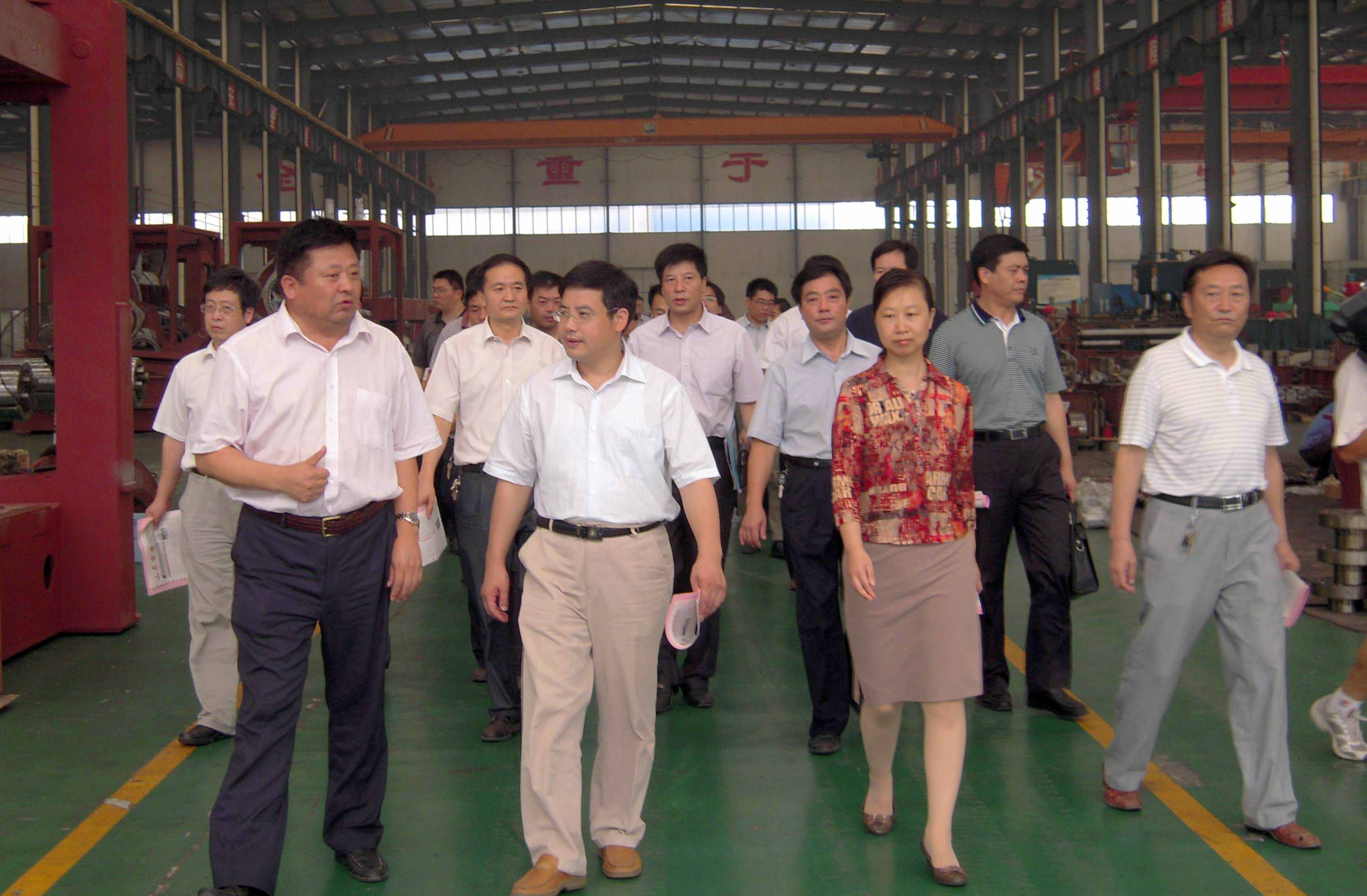 7月23日(rì),泰安市質量技術監督局局長劉(liú)運富、副局(jú)長(zhǎng)魏傳仁等市局領導攜各縣市區分局(jú)局長、站所負責人,在副區長張清(qīng)等領導(dǎo)陪同下蒞臨公司視察指導企業落實(shí)質量安全(quán)主體(tǐ)責任工作。公司董事長、總經理康鳳明匯報工作並(bìng)陪同到生產現場觀摩(mó)視察,常務副總經(jīng)理潘憲平等領導陪同活動。劉局長在聽取匯報(bào)後對公司開展企業標準化工作,落實質量(liàng)安全主體責任的做法給予充分肯定和高度(dù)評價。