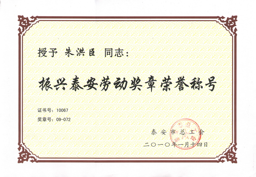1月14日,市總工會召開十三屆三次全委(擴大)會議,會議回顧總結了去(qù)年工作,研究部(bù)署確定了今(jīn)年工(gōng)作目標。同時隆重(chóng)表彰做出優(yōu)異成(chéng)績(jì)的先進集單位和先進個人。公司被市創建勞動關(guān)係和諧企業活動領導小組授予“泰安市AAA級(市級)勞(láo)動(dòng)關係和諧企業”稱號,裝配分(fèn)廠被市總工會授予“泰安市工人先鋒號”榮譽稱號,公司副總經理朱洪臣、康峰分別被授予振興泰(tài)安勞動獎(jiǎng)章。副總經理朱洪臣參加(jiā)會議並上台(tái)領獎。