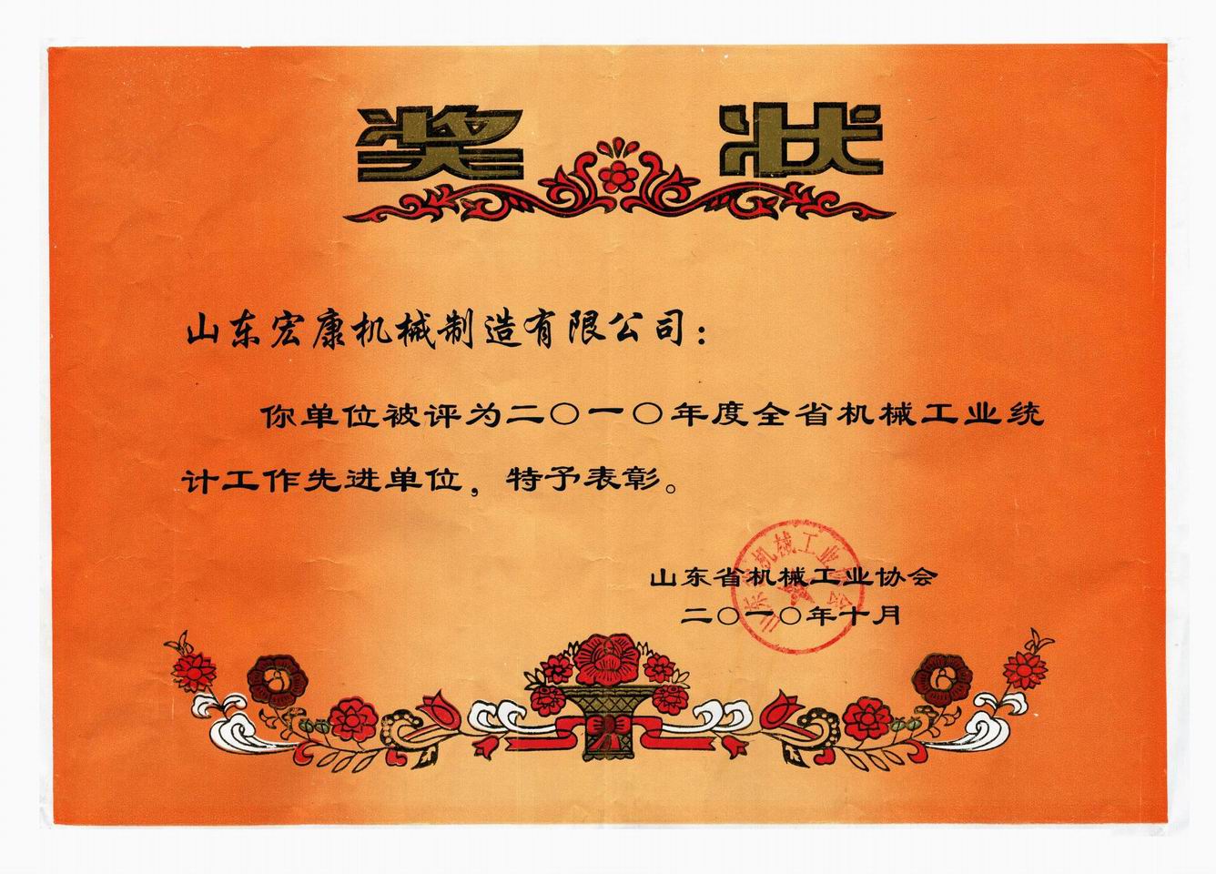 10月20日至22日,山東省機械工業統計(jì)信(xìn)息工作會議在棗莊(zhuāng)市滕州召開,我公(gōng)司被評為(wéi)“2010年度全省機械工業統計工(gōng)作先進單位(wèi)”。
